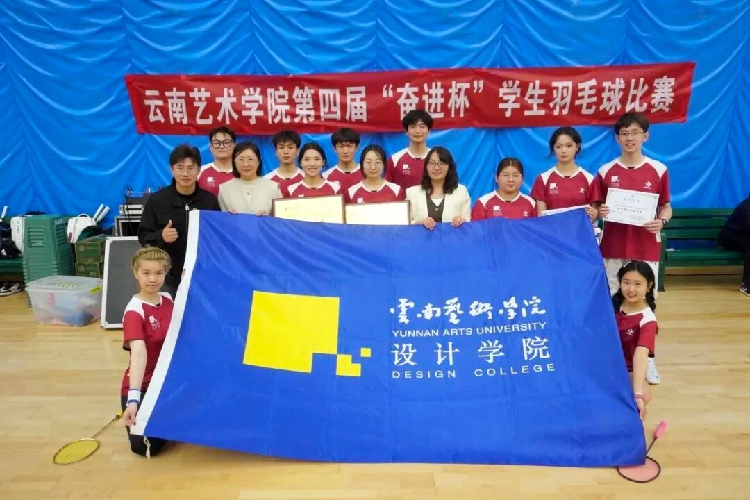 2026年3月28日至30日,云南艺术学院第四届“奋进杯”学生羽毛球比赛在气膜馆激情开赛。设计学院参赛队员们执拍上阵,驰骋赛场,在网前博弈、后场对拉中尽显风采,以小组赛第一名出线。最终,设计学院羽毛球队荣获团体第一名,学院获得 “优秀组织奖”,邹祺龙同学、李汶同学凭借出色的赛场发挥与精湛球技,分别获评本次比赛男子、女子最佳运动员奖。赛场的意义,从来不止于获奖的光芒,更在于每一次全力的奔赴、每一拍果断出击的果敢,...