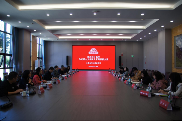 云南艺术学院马克思主义学院付梅院长向到访的重庆部分高校马院教师详细介绍了云南艺术学院马克思主义学院的发展历史、办学理念、学校思想政治理论课近年来所取得的发展成果;同时,详细介绍了云南艺术学院深深扎根于云南少数民族的特色,结合学生特点,逐步形成了具有“党建+思政+艺术”育人思路。