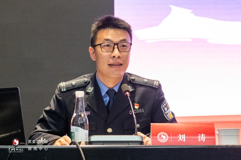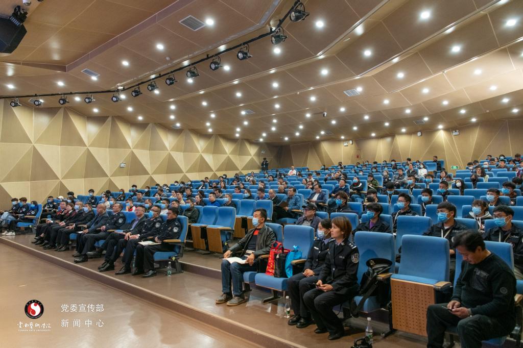 为巩固和提升省级“平安校园”创建成果,进一步落实学校安全稳定工作,提高师生对于恐怖主义的认识,云南省公安厅、云南省高级人民法院“我为群众办实事”实践活动于10月28日走进云南艺术学院,进行线上、线下联动,这是在高校开展巡回讲座的第一站。我校相关职能部门、二级学院负责人、辅导员、班主任、学生治安大队及师生代表近200人参加活动。活动由我校党委副书记杨国良同志主持。