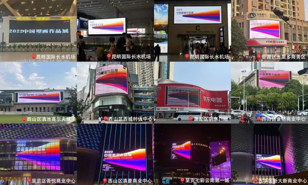 在数字技术快速更迭的时代,壁画艺术也应该在时代的主舞台上大放异彩,本次展览在昆明机场及市区6个商业中心滚动播放壁画展览宣传片,某种程度上也是在现代电子化公共空间上的探索,体现了壁画艺术的包容性——在深耕传统的同时,以最当代的方式活跃在现代科技领域。