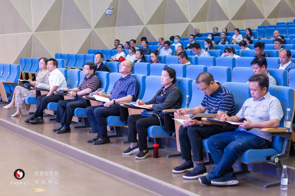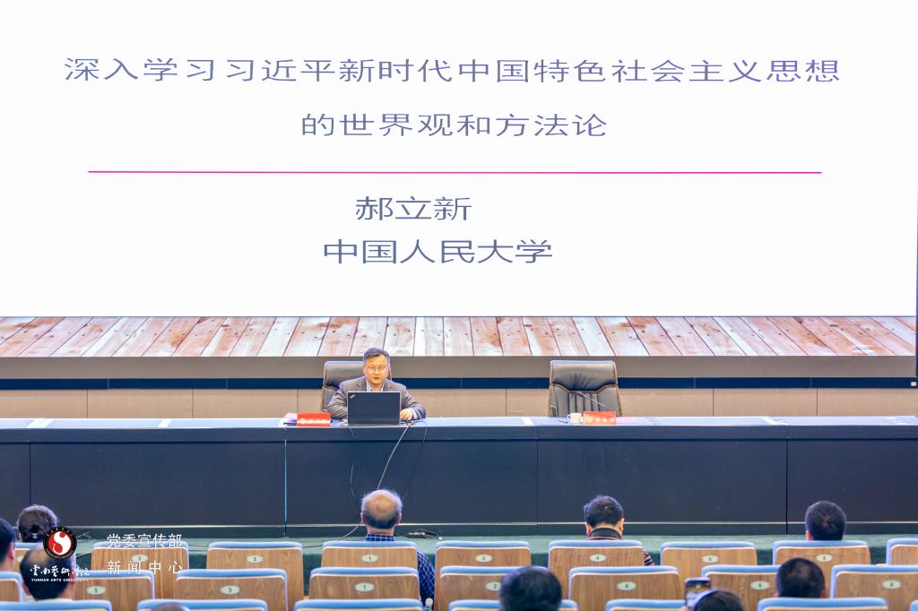 2023年4月27日下午,云南艺术学院学习贯彻习近平新时代中国特色社会主义思想主题教育读书班第一次专题辅导暨党委理论学习中心组集体学习(扩大)在图书馆报告厅召开,邀请中国人民大学明德书院院长、教育部长江学者、特聘教授郝立新作“深入学习习近平新时代中国特色社会主义思想的世界观和方法论”专题辅导。
