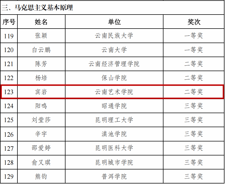 2025年5月29日至30日,由中共云南省委教育工委主办,云南省高校“中国近现代史纲要”课程教研中心、云南民族大学马克思主义学院承办的2025年云南省高校思想政治理论课教学展示暨优秀课程观摩活动在云南民族大学举办。来自全省43所高校的118名优秀思政课教师入围教学展示决赛,比赛分为“本科组”“高职高专组”“研究生课程组”等共三个组别。我校马克思主义学院6位教师参赛,其中,牛宇、宾岩、朱河锦3位教师分别进入所授课程的决赛阶段。