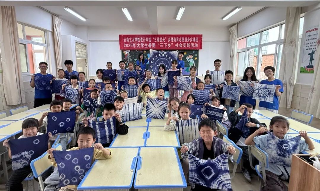 近期,云南艺术学院设计学院团委组建“艺缕星光”乡村美育志愿服务实践团开展云南艺术学院2025年大学生暑期“三下乡”社会实践活动。结合基层需求,实践团于2025年7月5日至11日赴玉溪市北城镇、峨山彝族自治县等地依托专业特色,在玉溪团市委的支持下,围绕“社会志愿服务、推普助力乡村振兴、爱国主义教育、传承中华文脉”4个方面开展社会实践活动。