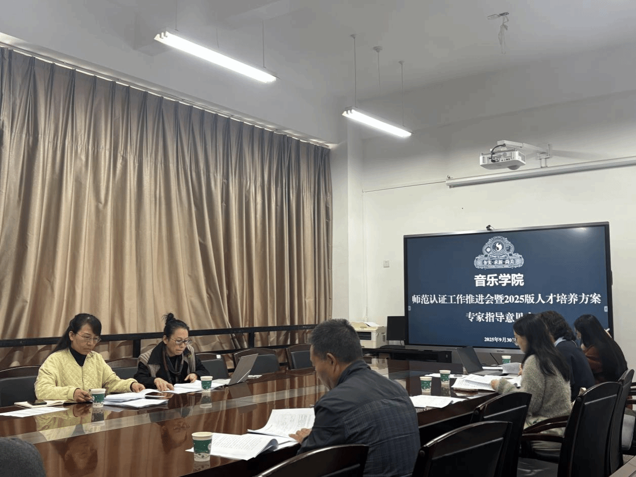为扎实推进音乐师范类专业认证工作,优化2025版本科人才培养方案,音乐学院于2025年9月30日上午组织召开师范专业认证工作推进会暨人才培养方案专家指导意见会。会议由侯静宜副院长主持,音乐教育系教师参加,学校教务处处长温泉沁到会指导。