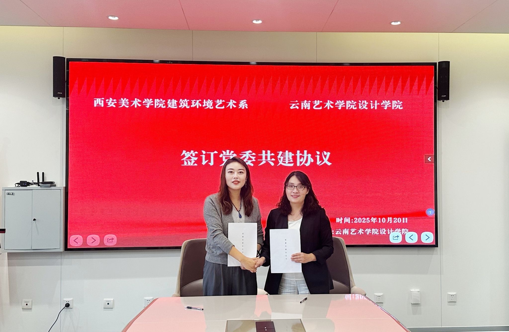 最后,双方签署了党建共建联建协议,并一致认为,将以此为契机,充分挖掘和彰显云艺设计学院在铸牢中华民族共同体意识、西美建筑环境艺术系在中国红色革命文化方面的地域特点和优势,不断深化党建共建联建内涵,丰富党建共建联建形式,打造党建共建联建品牌,积极推进双方党建工作与业务发展的深度融合与双向赋能。