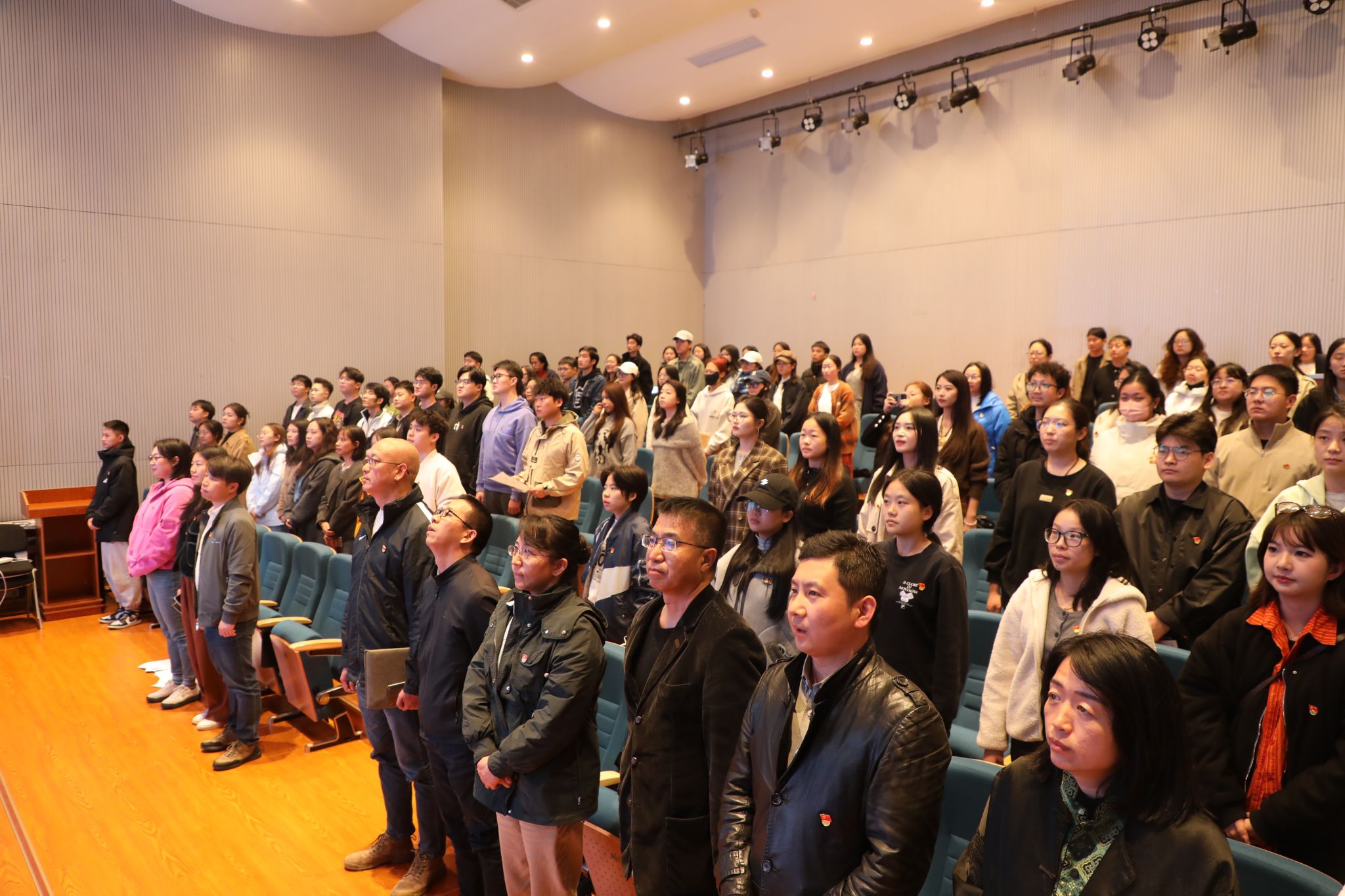 为深入学习贯彻习近平总书记在纪念中国人民抗日战争暨世界反法西斯战争胜利80周年活动上的重要讲话精神,2025年10月22日下午,由哈尔滨音乐学院和侵华日军第七三一部队罪证陈列馆联合承办的“铭记历史、珍爱和平”纪念中国人民抗日战争暨世界反法西斯战争胜利80周年联合主题党日暨千人同上一堂思政大课活动在哈尔滨市侵华日军第七三一部队罪证陈列馆举办,全国11所独立设置的音乐学院音乐学系(人文学院)和8所公办本科艺术学院音乐学院党委(党总支),共计千余名党员和师生通过线上线下相结合的方式参加活动,云南艺术学院音乐学院100余名师生党员、入党积极分子、团学骨干在B403演播厅集中线上参与。