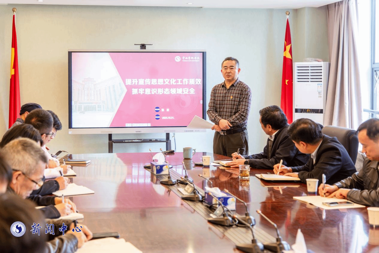 为进一步提升党建工作队伍履职能力,10月31日,云南艺术学院职能部门党委开展2025年党建工作队伍履职能力提升培训第二讲。校党委委员、宣传部部长张勇应邀作宣传思想文化工作专题讲座。培训由职能部门党委书记余光荣主持。