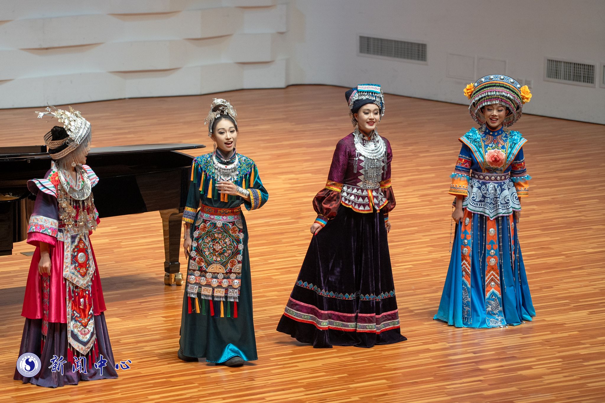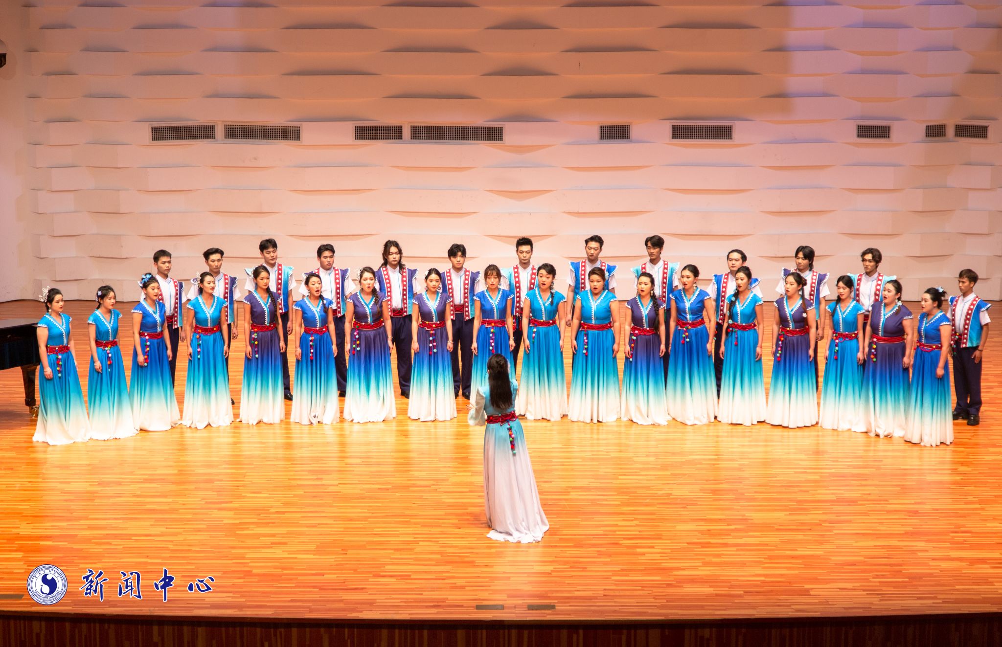 音乐会最后,由云南艺术学院青年合唱团为观众献上《云南民歌地图》,作品巧妙融合《纳西古调》《放马山歌》《小河淌水》《撒里啰》《彝族打歌》等云南经典民歌,并融入现代元素进行演绎。