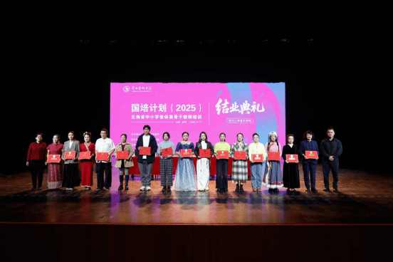 2025年11月17日17:30,为期20天的国培计划(2025)云南省中小学音体美骨干教师音乐学科和美术学科培训在云南艺术学院麻园校区展演中心实验剧场落下帷幕。