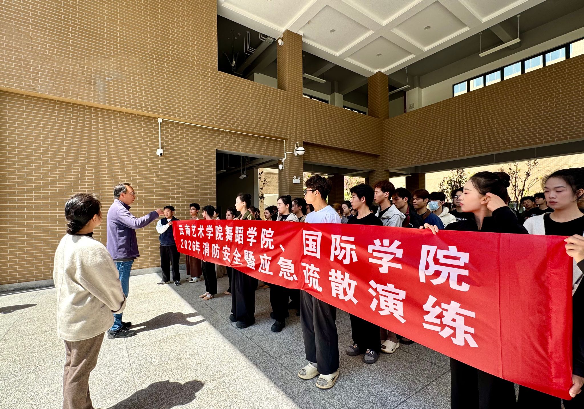 为切实增强师生安全防范意识,提升应急处置与自救互救能力,筑牢校园安全防线,3月19日,在学校保卫处指导下,舞蹈学院与国际学院联合开展2026年校园综合应急疏散演练暨消防安全知识培训。