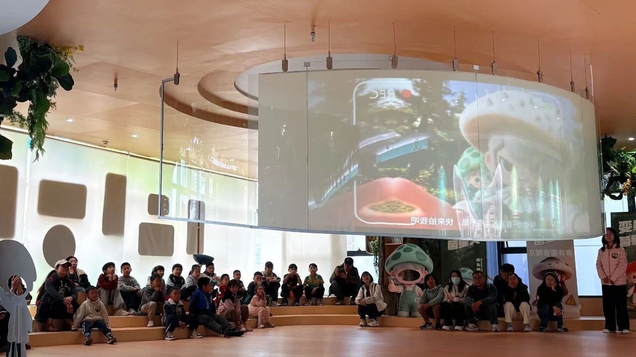 孩子们观看了云南艺术学院师生原创科普动画《菌有信人赴约》的首次展示。该片由数字媒体艺术专业团队精心制作,将菌类生长、形态、生态价值等抽象知识转化为鲜活的数字画面,展现了数字媒体艺术在科普传播中的创新性应用。