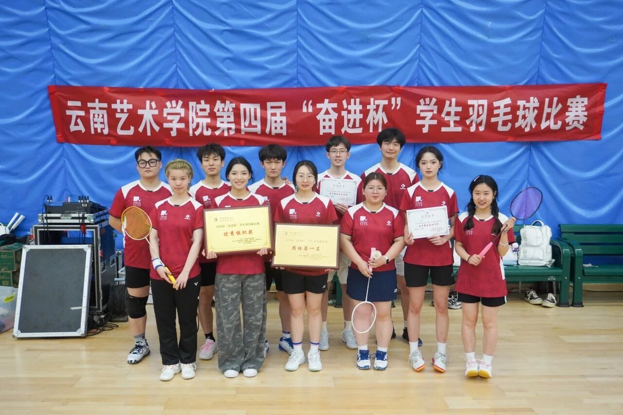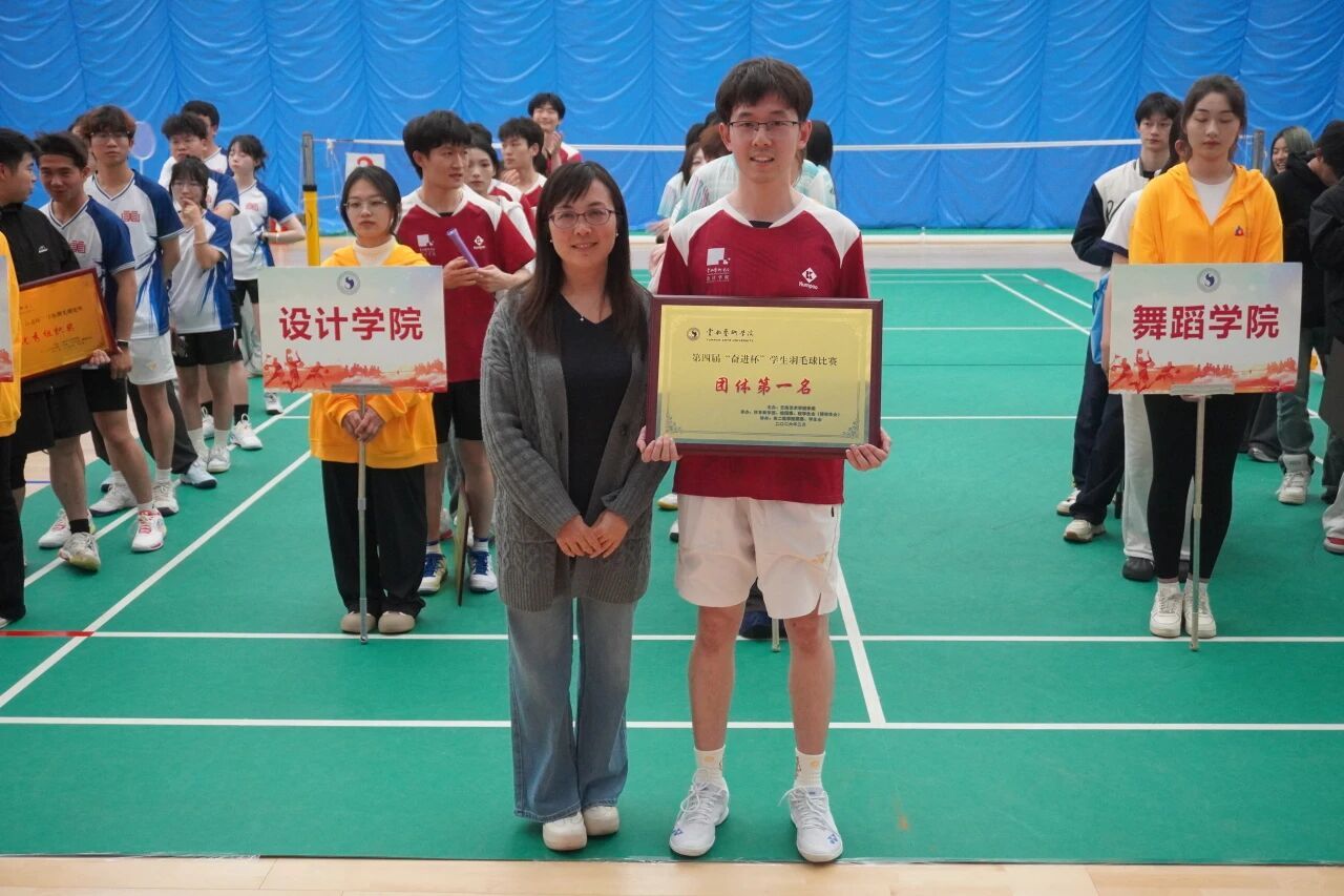 2026年3月28日至30日,云南艺术学院第四届“奋进杯”学生羽毛球比赛在气膜馆激情开赛。设计学院参赛队员们执拍上阵,驰骋赛场,在网前博弈、后场对拉中尽显风采,以小组赛第一名出线。最终,设计学院羽毛球队荣获团体第一名,学院获得 “优秀组织奖”,邹祺龙同学、李汶同学凭借出色的赛场发挥与精湛球技,分别获评本次比赛男子、女子最佳运动员奖。