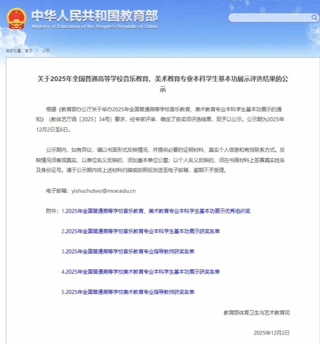 2025年全国普通高等学校音乐教育专业本科学生基本功展示由教育部体育卫生与艺术教育司主办,陕西省教育厅、陕西师范大学承办,全国高校美育教学指导委员会、全国中小学美育教学指导委员会协办。本次基本功展示于2025年10月26日至10月30日期间在陕西师范大学长安校区举办,作为全国高校音乐教育领域高规格、具有权威性与影响力的交流展示平台,吸引了来自全国31个省(区、市)及新疆生产建设兵团93所高校的89名指导教师、267名学生参赛。展示分学生组与教师组,学生组涵盖教学展示(微课)、即兴弹唱、合唱指挥、自选项目(器乐、舞蹈、戏曲、戏剧);教师组包含现场说课、审美和人文素养展示、专业技能展示(声乐演唱、钢琴演奏、中外乐器演奏、指挥、即兴弹唱)、社会实践等内容,全面考察师生综合能力,充分体现音乐教育专业“教”“艺”并重的核心理念。