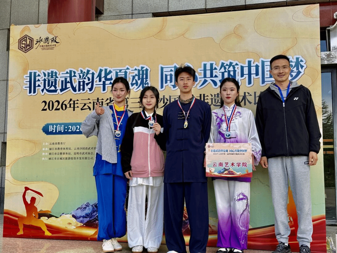 云南艺术学院武术代表队由体育教学部梁伟杰领队,胡鹏担任教练组队参赛,经过前期选拔和数月集训,在参赛过程中,我校学子奋力进取,稳定发挥,充分展现了云艺学子的精神风貌,经过激烈角逐,我校学生最终获得亚军四项,第六名一项,云艺学生武术代表队获得“最佳组织奖”。其中,谭景恒在传统通背拳项目中获得亚军、曾丽蓉在传统形意拳项目中获得亚军、吴欣怡在传统通背拳项目中获得亚军、洪子凝在传统八卦掌项目中获得亚军。