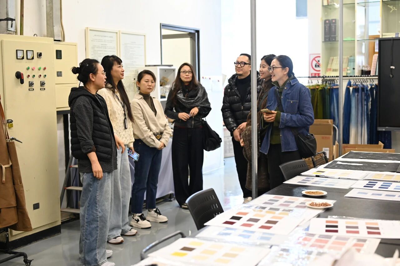 座谈结束后,调研团队在吴波、张宝华两位老师的带领下对清华大学美术学院的传统染织工艺实验室、服装工艺实验室、织绣工艺实验室、印染工艺实验室、纤维艺术实验室等各类教学实验室进行了全面参观。