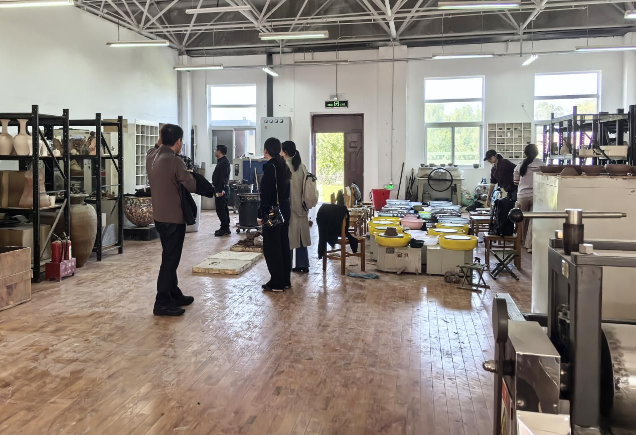 研讨会结束后,郑煜川院长陪同云南艺术学院教师开展实地调研,走进课堂教学场景,了解学生创作状态。参观了中国画、油画、陶艺等工作室,详细了解工作室教学设备配置、实践课程开设情况等,为后续合作提供直观参考。