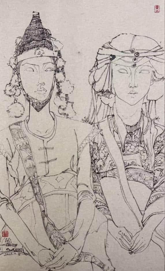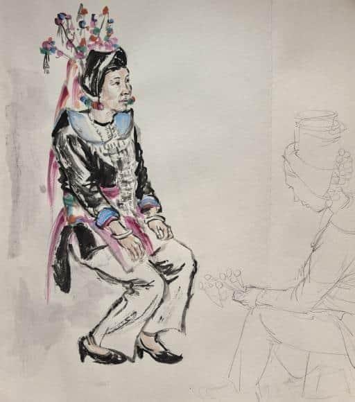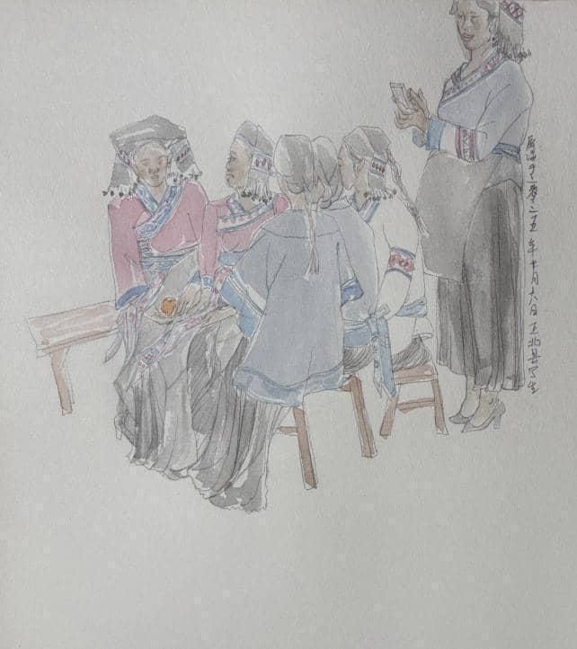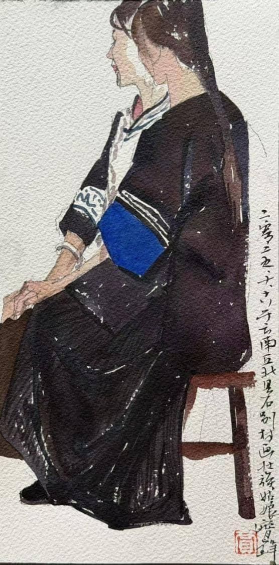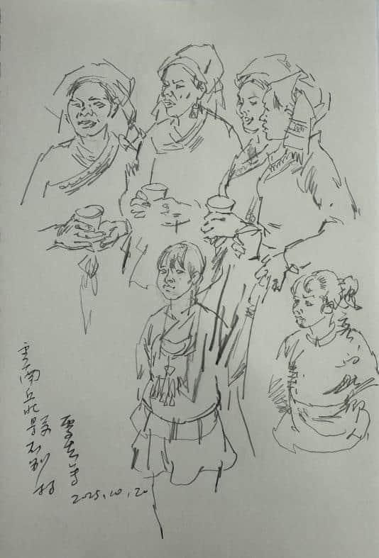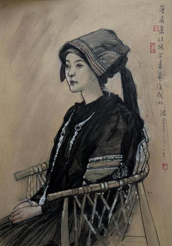 理论的生命力在于实践。本次“民族形象”研讨会上关于中国人物画时代使命、民族精神表达的深刻探讨,在丘北的青山绿水间找到了最鲜活的注脚。当师生们走出课堂与展厅,置身于菜花菁的静谧、仙人洞村的烟火气、石别村的质朴之中时,艺术的焦点从理论思辨精准投向了鲜活生动的个体。画笔之下,不再是概念化的民族符号,而是在这片土地上劳作、歌唱、生活的具体的人。这种“在场”的描绘,是实现从“风情再现”到“精神塑造”升华的关键一步,真正回应了“笔墨当扎根大地”的呼唤。