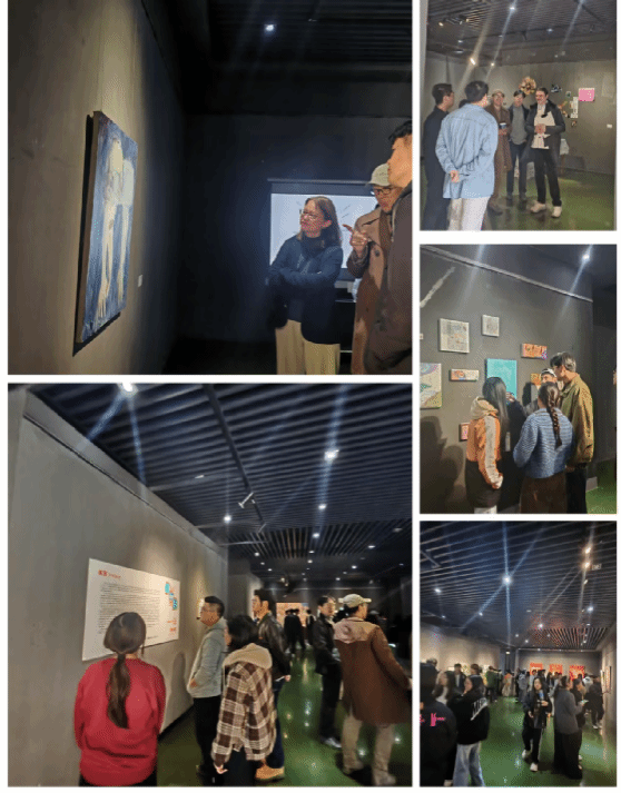 曹悦教授在致辞中肯定了本次跨文化对话的成功,认为学员充分诠释了创作素材、高效利用了展览空间,取得了教学相长的良好效果。 授课专家克里斯托夫教授指出,此次展出作品亮点纷呈,充分彰显了同学们转移转换的创新精神。学员代表赵晓平分享了创作感悟,讲述了从日常图像到自我表达的转化过程,传递对艺术与时代命题的积极回应。参加展览开幕式的教师们也高度赞扬了工作坊“执着探索艺术”的学术精神,肯定了作品兼具多元性与实验性的鲜明特质,并寄语学员巩固创作成果,延续良好创作状态。最后,美术学院党委副书记何君宣布展览正式开幕,参观展览的师生在开幕式后与德国专家展开了热烈的学术讨论。