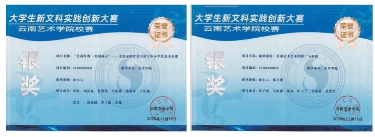 本年度在教学和创作实践外,费秋生老师驻红河县带队指导教师,徐小云老师驻富宁县带队指导教师积极践行美育浸润计划,全面提升师生综合素养,积极践行服务社会的职责。中国画专业教师参与云南省教育厅组织的“美育浸润计划”“中国书画名家进校园”“社区书画公益课”等志愿活动,通过为中小学美术教师、中小学生、社区居民讲解中国画基础知识和创作进行示范技法,普及中国书画艺术,同时也锻炼了沟通表达与教学实践能力。