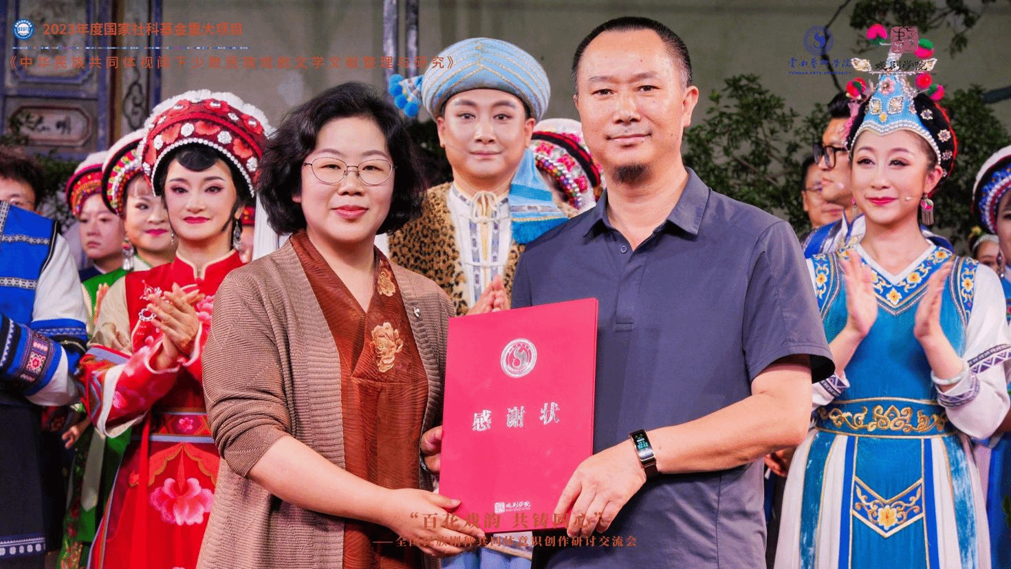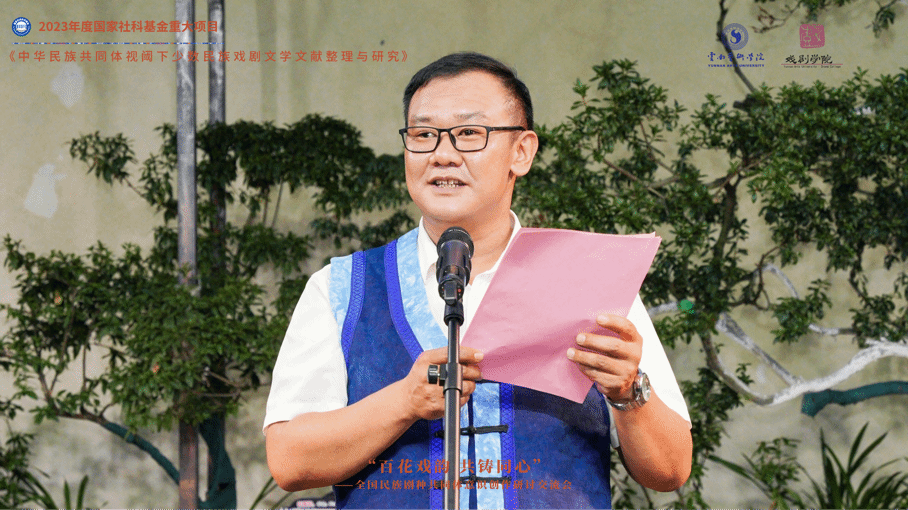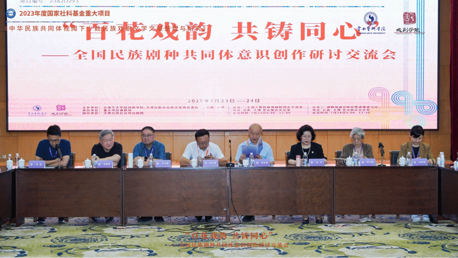 2025年7月23、24日,由云南艺术学院戏剧学院和大理白族自治州文化和旅游局联合主办,国家社科基金重大项目《中华民族共同体视阈下少数民族戏剧文学文献整理与研究》课题组承办,大理白族自治州白剧团协办的“百花戏韵·共铸同心——全国民族剧种共同体意识创作研讨交流会”在大理成功举办。