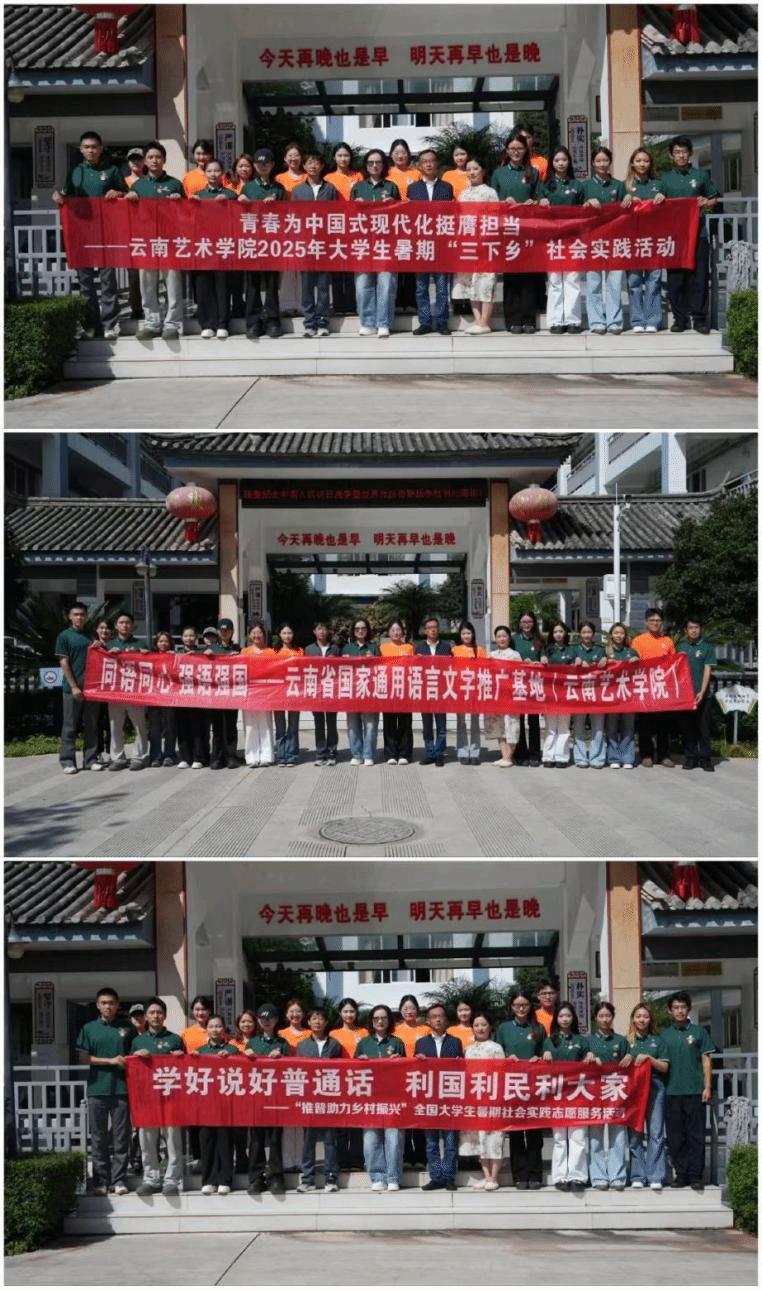 为进一步加强国家通用语言文字推广普及,助力乡村文化传承与发展建设,认真落实习近平总书记关于教育与语言文字工作的重要指示批示精神,扎实推进《教育强国建设规划纲要(2024-2035年)》的实施,云南艺术学院师生充分发挥专业特长,组建“同语同心 强语强国”推普助力乡村振兴服务队(简称“推普服务队”,下同)。该队于2025年8月25日赴大理巍山县开展了为期7天的“三下乡”推普助力乡村振兴社会实践活动。
