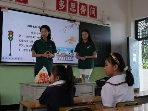图5 推普服务队同学在为民小学开展普通话专题讲座 给小学学生上课