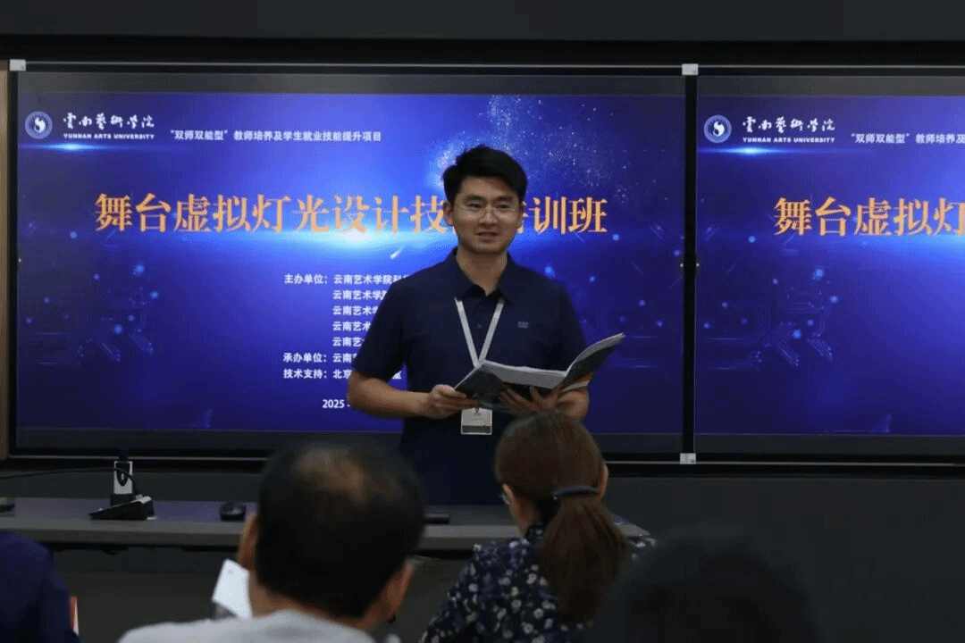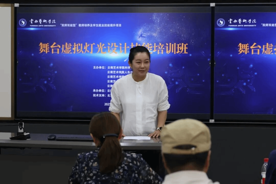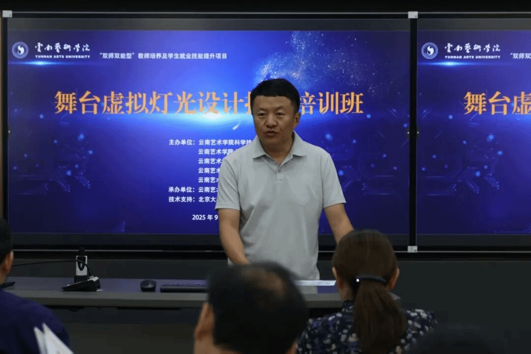 2025年9月6日,云南艺术学院舞台视觉虚拟仿真青年骨干教师培训及学生就业技能提升项目——舞台虚拟灯光设计技能培训班开班仪式在戏剧学院顺利举行。本次培训是深入贯彻落实国家文化数字化战略、推动艺术与科技深度融合、加强高素质应用型艺术人才培养的重要举措。