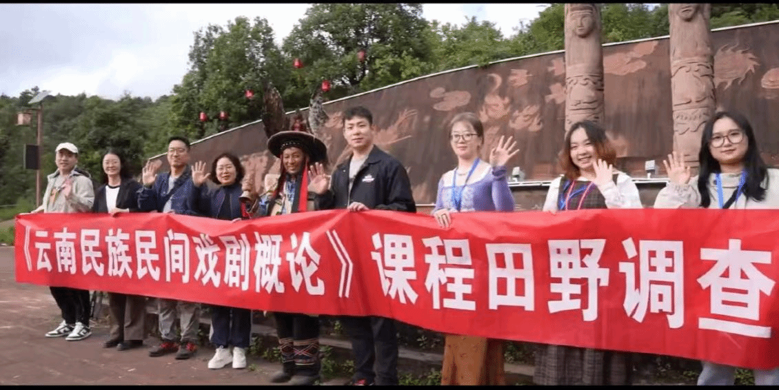 《云南民族民间戏剧概论》是戏剧学院两个国家一流专业建设点:戏剧影视文学和戏剧学的专业核心课程,也是云南艺术学院立足丰富的民族民间戏剧文化资源,经过三代教师赓续建设,在全国独树一帜的特色课程。本课程由戏剧学系主任苗露教授牵头,副教授以上职称教师共同授课。立足云南多民族戏剧资源,依托国家社科基金重大课题为学术支撑,通过“课堂—田野—非遗传承—创作实践”四维联动,系统培养学生的民族戏剧认知与研究能力。与超10家戏曲院团与合作单位共建实践基地,推动学生深入民族地区开展田野采风、参与非遗保护实践,教师团队引领学生深入理解中国民族民间戏剧的发展脉络,掌握田野调研与非遗保护方法。课程注重文化自信培育与多民族戏剧创作实践,搭建“学—研—产”一体化平台,有效连通学术界与行业实践。值得一提的是,本课程历经王胜华、杨军、苗露三代教师建设,彰显戏剧学院学术传承。
