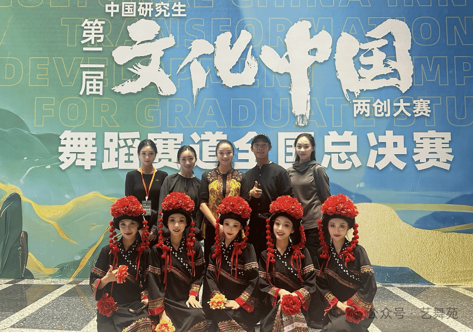 在经历校内选拔赛,全国选拔赛之后,我院共有两部原创作品入选全国总决赛。9月27日在邓钰莹、牛嗣萱、杨贺婷三位老师带领下,2023级研究生杨浩月、王欣,2024级研究生陈乐、徐雨婷,2025级研究生闫淑儿、吴童乐、毛晶晶共七位同学参加了此次全国总决赛。入围全国总决赛的两部作品分别是布朗族女子群舞《花漾》(指导教师:邓钰莹)入围舞蹈创作组,壮族女子独舞《播谷耘歌》(指导教师:徐梅、牛嗣萱)入围舞蹈表演组。
