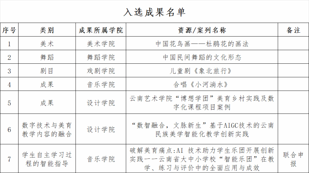 我校7项成果入选教育部数字化美育资源与智能化美育应用案例名单
